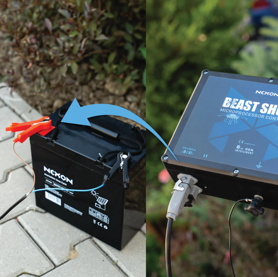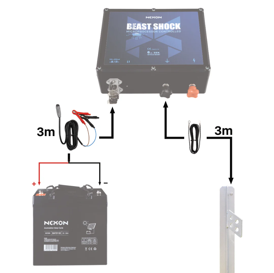 A NEXON tápkábel szett STAS krokodilcsipesszel (1,8 m) kifejezetten a NEXON BeastShock 6. generációs villanypásztor készülékhez lett tervezve, amely 12V-os akkumulátorról működik.