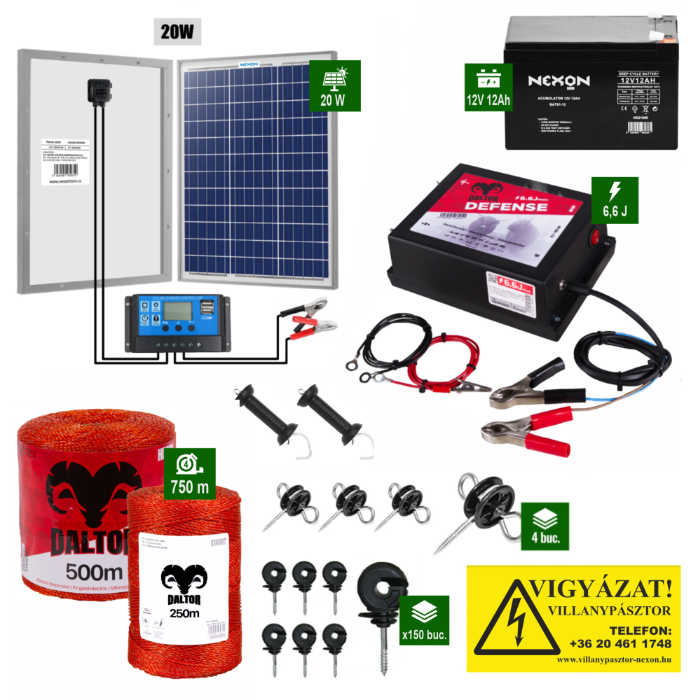 A DALTOR Defense 6,6 Joule villanypásztor szettet úgy állítottuk össze, hogy megkönnyítsük egy hatékony elektromos kerítés rendszer kialakítását.