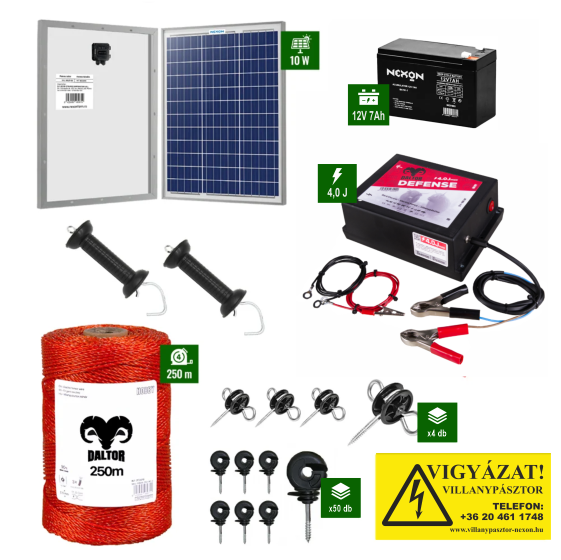 Napelemes DALTOR Defense 4J villanypásztor szett – 250 m vezetékkel és akkumulátorral