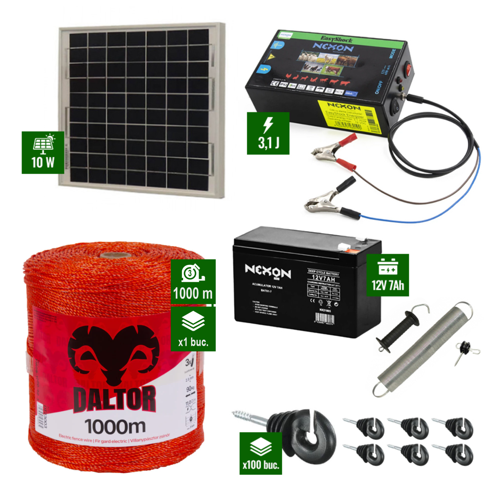 Nexon 3,1J Napelemes villanypásztor 1000m vezeték 80Kg