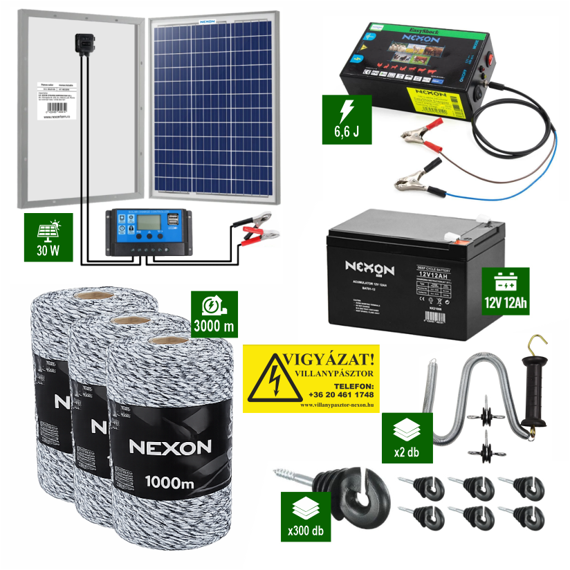 Ez a komplett villanypásztor csomag ideális megoldás állatok biztonságos körbekerítésére és területek védelmére. A szett minden szükséges elemet tartalmaz a gyors telepítéshez és a megbízható működéshez.